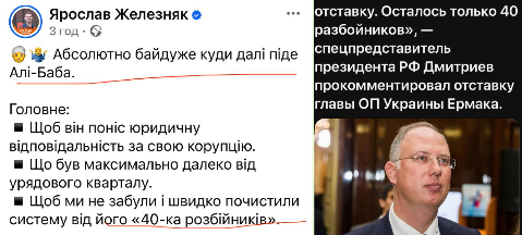 Голова правління ГО «Асоціація малого бізнесу та МАФів» прокоментував, що обшуки у Андрія Єрмака - це пряма спроба зриву мирної угоди України з росією.